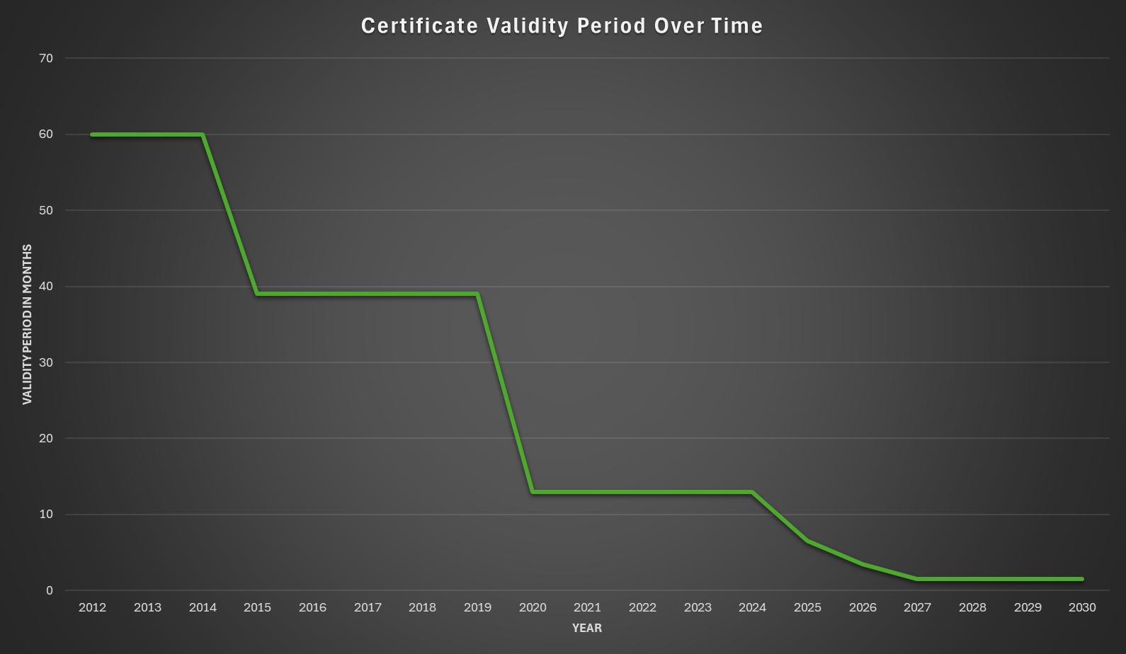 There's a lot of really good information out there on this topic, and I myself have covered this in various ways over the years. I'd definitely recommend my post on Cryptographic Agility as a good starting point, but I will pull the most pertinent information out into this post here. Looking at the historic reductions to certificate lifetimes, we can summarise them as the following maximum limits and when they were introduced: