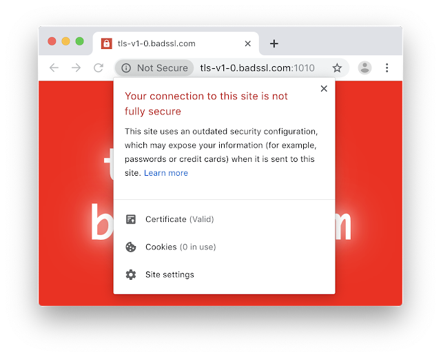 In March 2020 Chrome will stop connecting to sites using legacy versions of TLS and you will see the error above. Again, to clarify, this does not mean you need to disable TLSv1.0 or TLSv1.1 on your site, it just means you also need to support TLSv1.2 or above. Don't get me wrong, you absolutely should disable these legacy versions anyway, but you don't need to because of this change. For more details on how to improve your TLS config, Chrome has an earlier blog post on improving your config that you should check out.