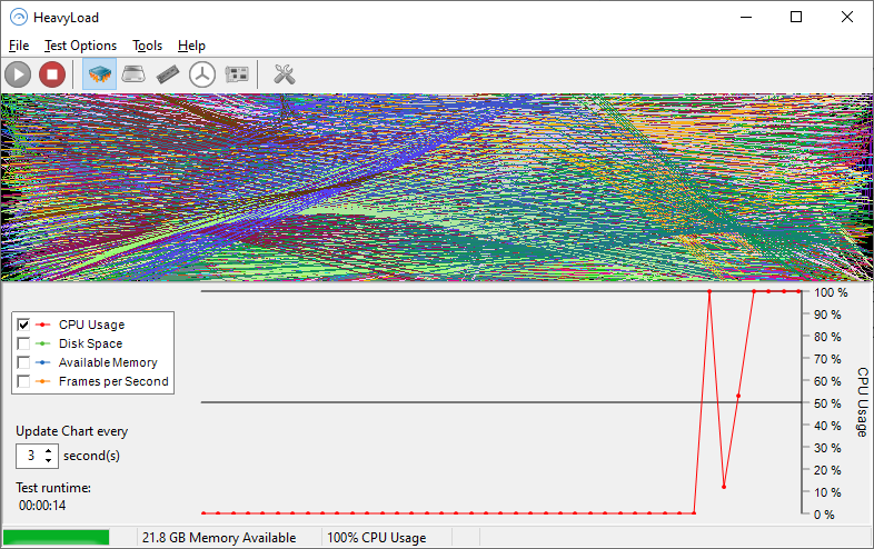 Back to the BIOS and it's time to start tweaking again, slowly incrementing the core clock speed and testing it after each change. I'm using HeavyLoad to stress the CPU and you just fire up this little program to sit all of your cores at 100% utilisation and warm them up.