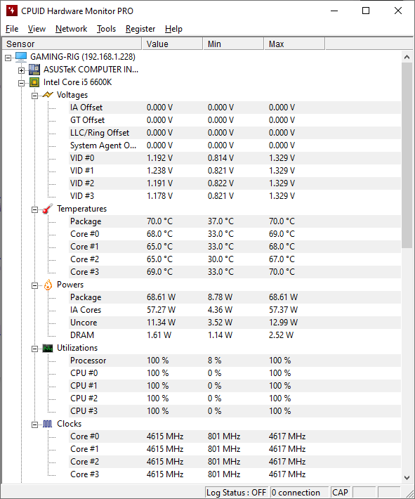 The purpose here is to see if the system is stable under full load and also to keep an eye on your temperatures to make sure nothing will overheat under full load. To keep an eye on those things I'm using Hardware Monitor Pro.