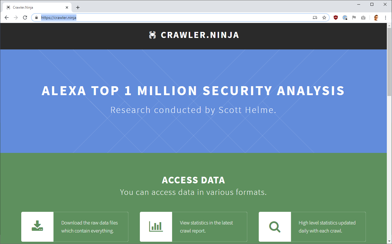 Yep, my Crawler.Ninja project is in there too just to add a slightly different perspective to the data. My crawler analyses the Top 1 Million ranked websites every day and amongst all of the data it logs is who issued the certificate.