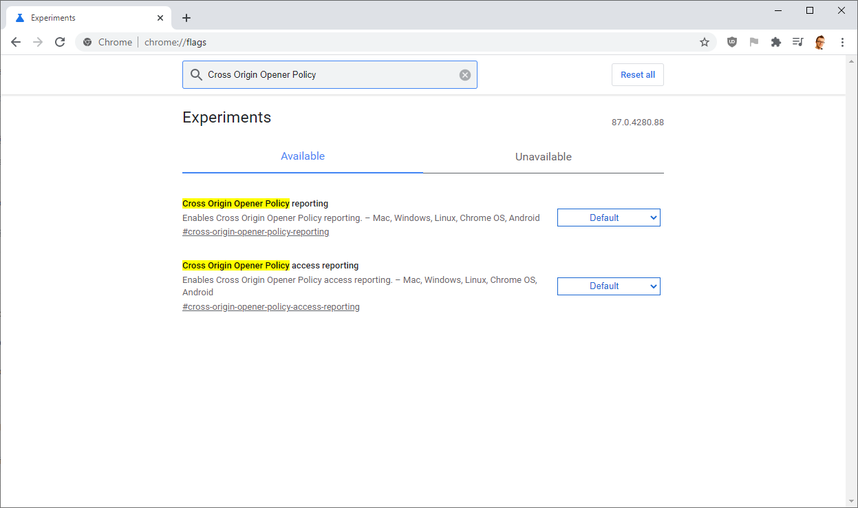 chrome://flags/#cross-origin-opener-policy-access-reporting