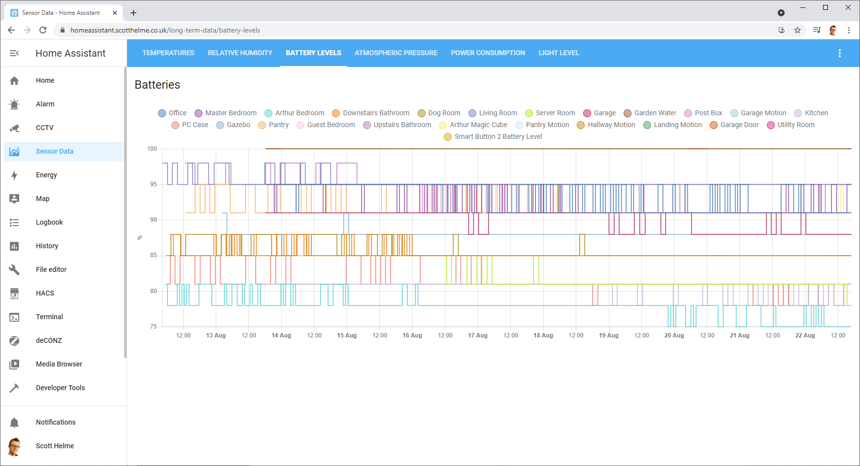 The most useful one of these we have is on the garage door and we have an automation to let us know at 22:00 every night if the garage door is still open. In itself that's quite a good anti-burglary mechanism and it's saved us a few times from leaving the garage door open all night, but it will form part of a bigger picture soon.