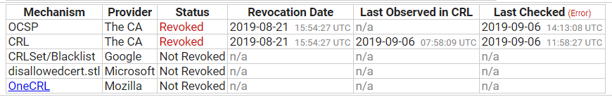 That's quite a list... Again, click through a selection of those and you can see that the majority are already revoked and we can assume replaced by new certificates with the appropriate values set.