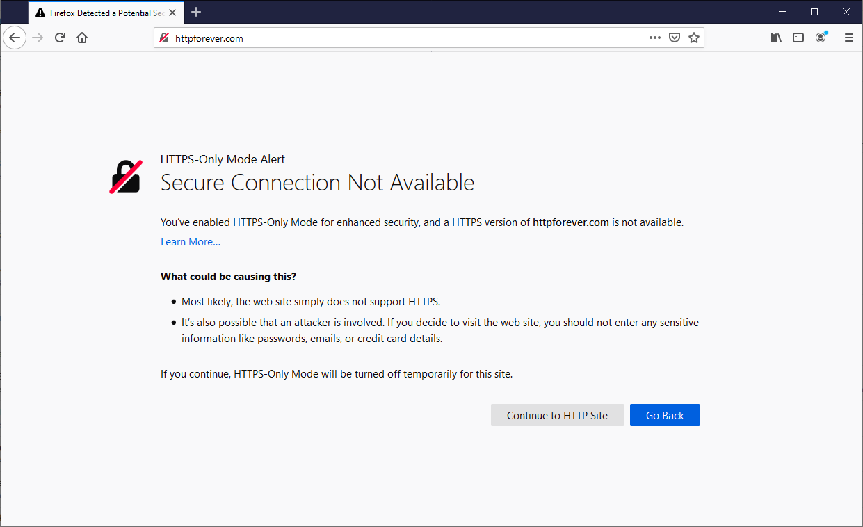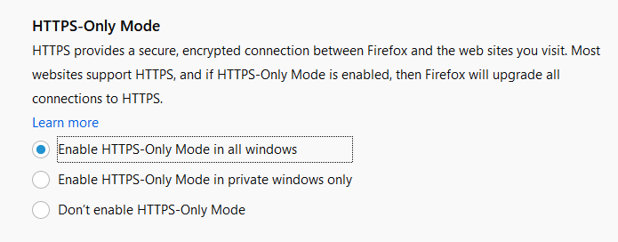 We are currently powering towards an encrypted Web and in recent years we've made tremendous progress on that journey. In the latest version of Firefox, a browser that's been at the forefront of the drive towards more encryption, we get a new "HTTPS-Only Mode"