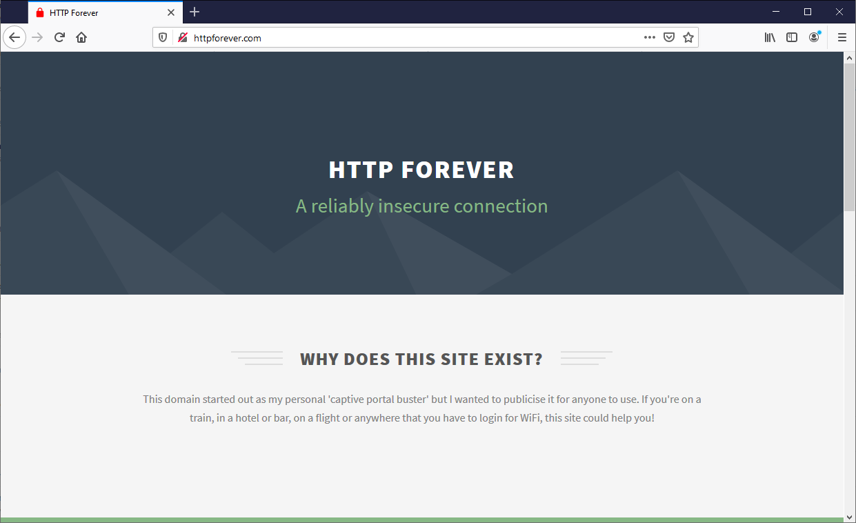 I keep a site around that I've used for captive portal busting for years and it's the perfect site to use here for a demonstration; http://httpforever.com