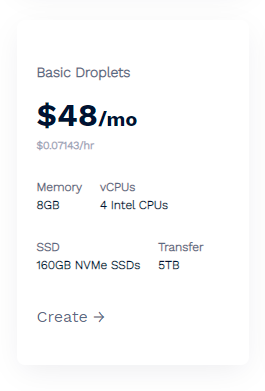 As we already have some quite nice Redis Servers it's not too difficult to find the capacity to add the above Count-Min Sketch. Even if you don't have an existing Redis Server, looking at our VPS provider, DigitalOcean, you could spin one up that's capable of handling the largest requirements above for only $48/mo.