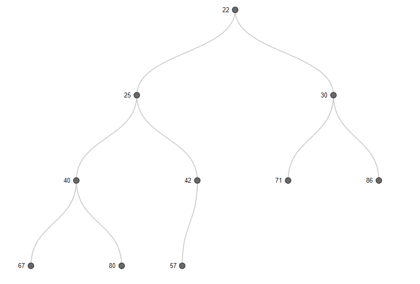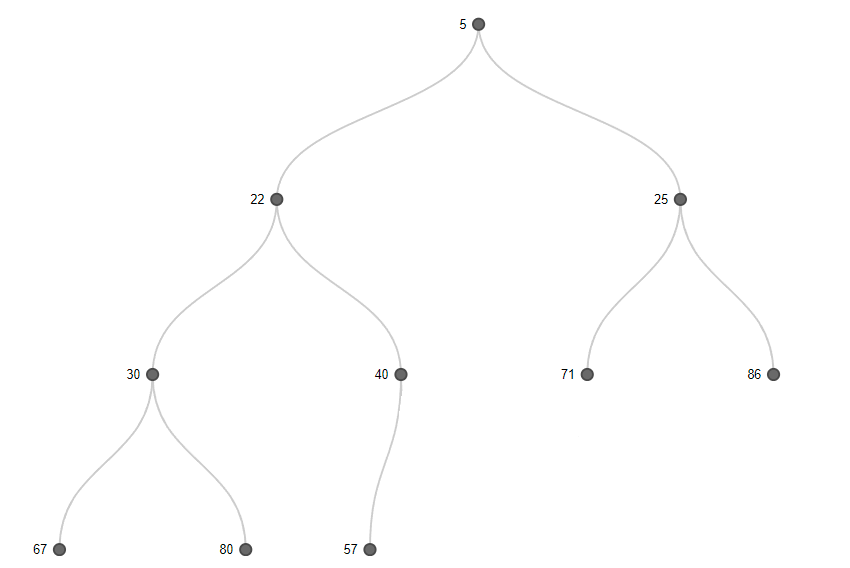 | min-heap | 5 | 22 | 25 | 30 | 40 | 71 | 86 | 67 | 80 | 57 |