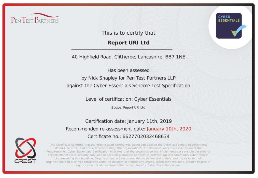 Is your security up to scratch? How do you know? Would you like to know? Security is becoming more and more important each day and it's something I have a keen desire to keep on top of. Over at Report URI we recently had ourselves tested against a UK Government standard called Cyber Essentials.