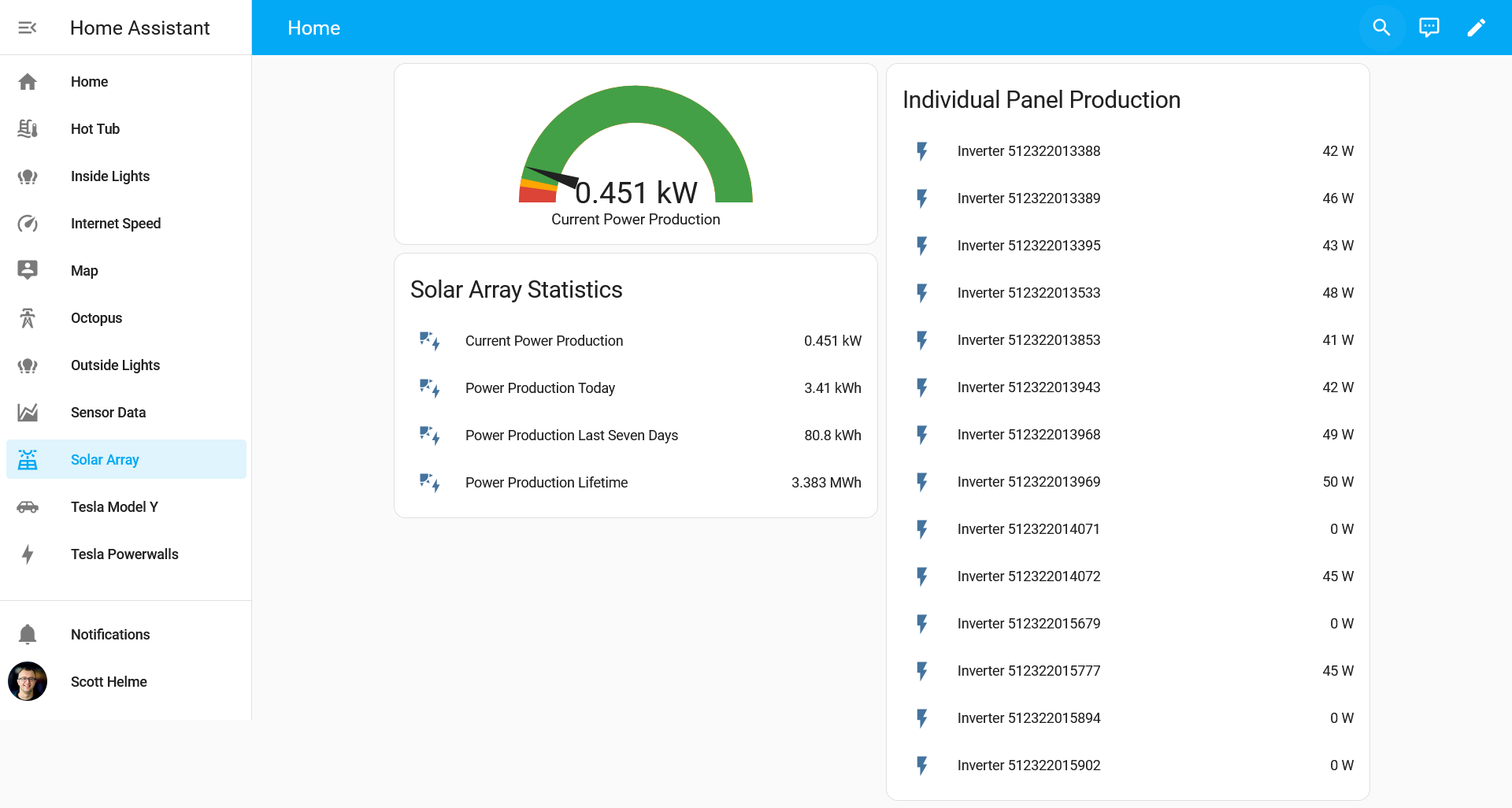 Of course, we also have an integration for our solar array too, and the Enphase integration allows us to see exactly what's going on with our solar array, and all of the statistics you'd ever want.