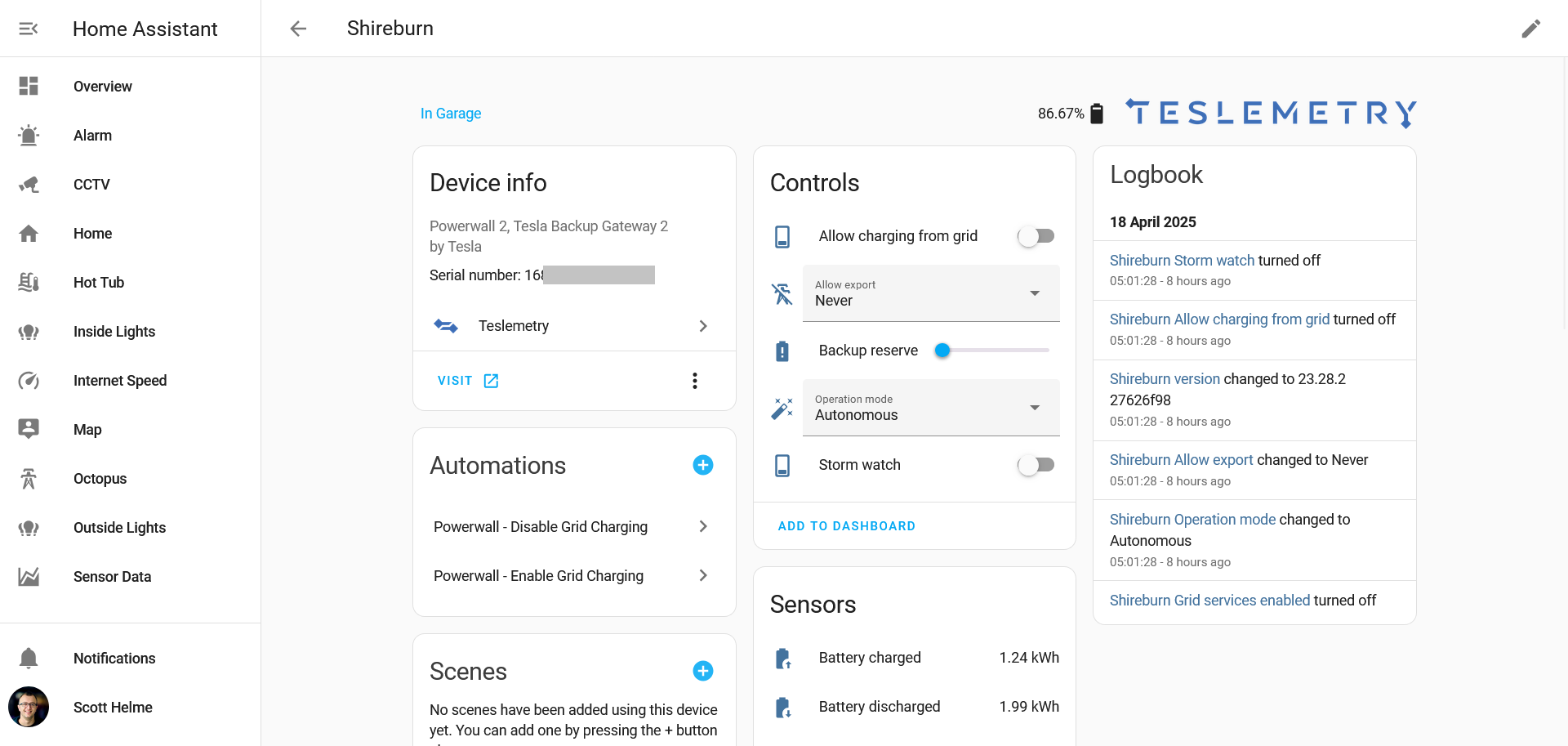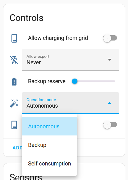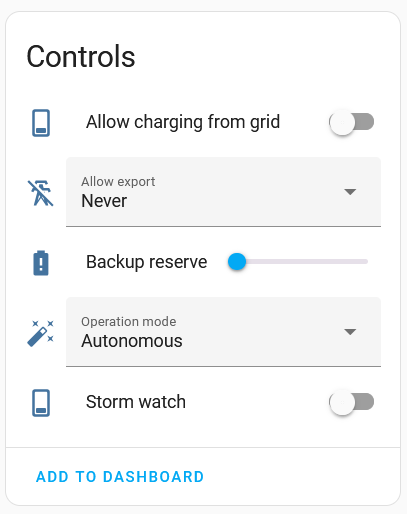As you can see, this is no longer just information coming from the Powerwalls, I now have the ability to control settings on the Powerwalls too! This is what's going to help me create the automations that I need to ensure the Powerwalls behave how I want them to behave.