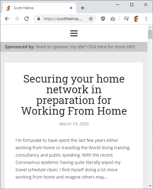 When you're on the road so much it becomes difficult to dedicate time to other tasks but now that my travel is gone, I'm picking up things that I previously just couldn't fit into my schedule. I announced back in 2018 that I was removing ads from my blog and instead going for a simpler, cleaner, lighter and safer approach with a sponsor message.