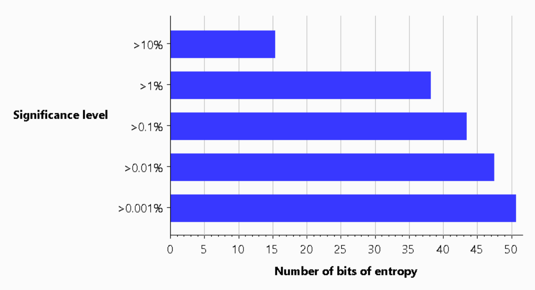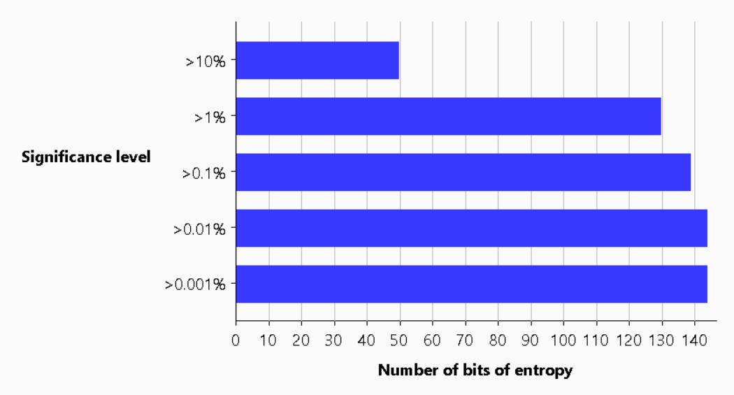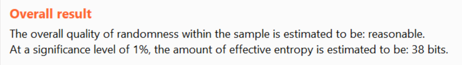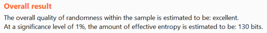 ...I also ran the analysis again in Burp and things are looking considerably better with ~130bits of entropy estimated from our 144bits.
