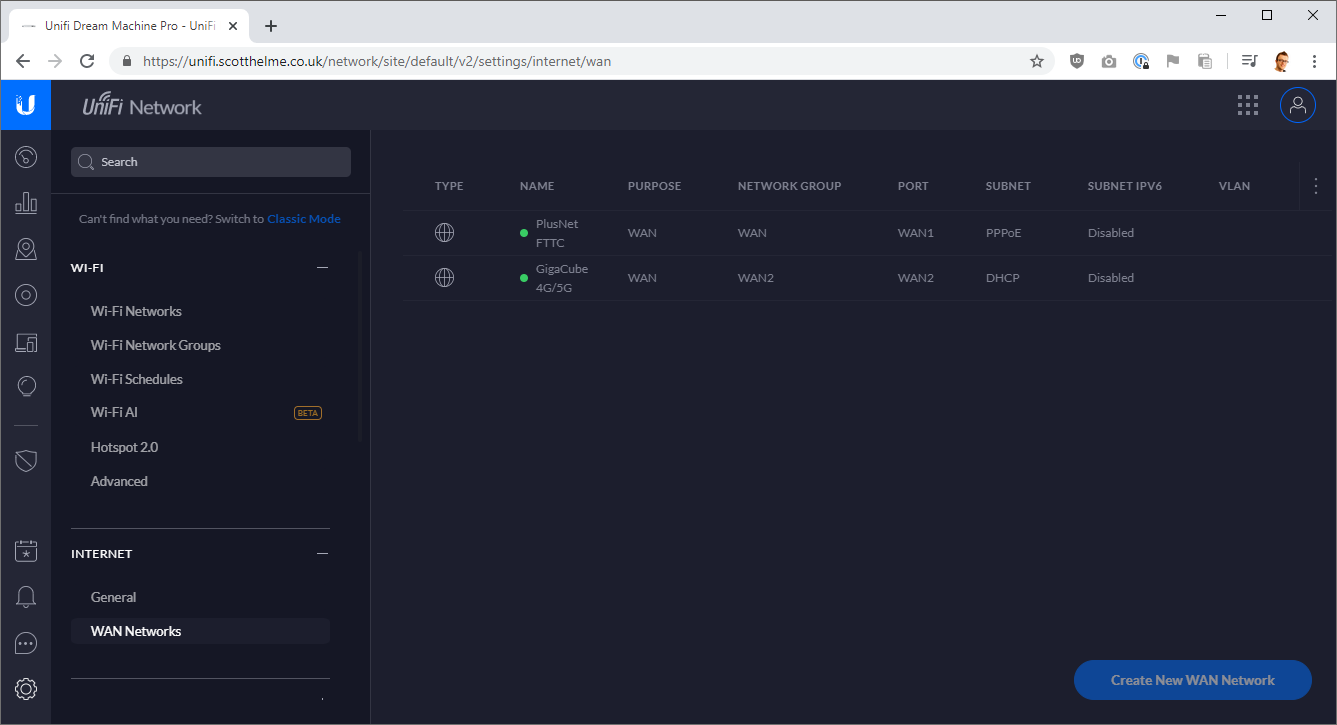 Powering this thing up for the first time was epic. I know it's such a geek thing and people will tell me completely overkill, but you will never convince me. Having a setup like this is so freakin' cool and really exciting. I had the choice to try and migrate from my USG to the UDM Pro but I have a small network really so I decided to do everything fresh, I wanted a clean start. First up was to get the UDM Pro connected to my Internet connection and I hit a snag because I was using the wrong username for my PPPoE connection but once I'd realised that, everything was a breeze.