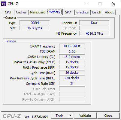I wanted to start my adventure with my RAM because it wasn't actually running as fast as it was capable of running. I use a great tool called CPUz to look at things like my CPU and RAM speeds and it was showing the following.