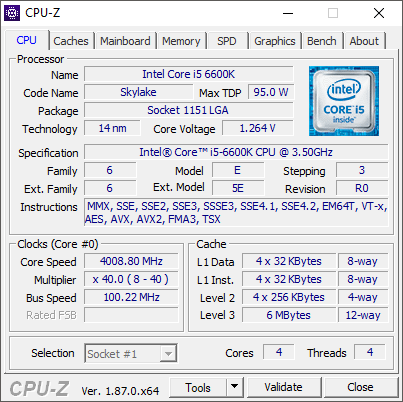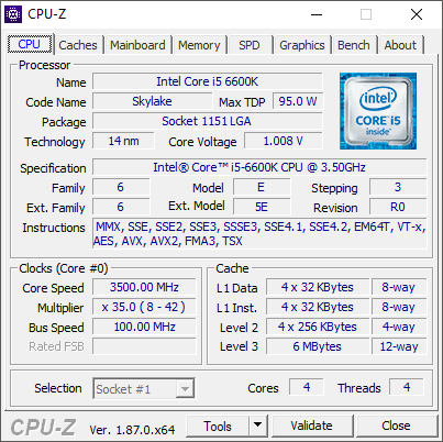 The CPU was slightly different because it was already running at its 'top' speed. My processor runs at 3.5GHz and has the ability to boost up to 3.9GHz when needed. Here is the data in CPUz for my CPU.