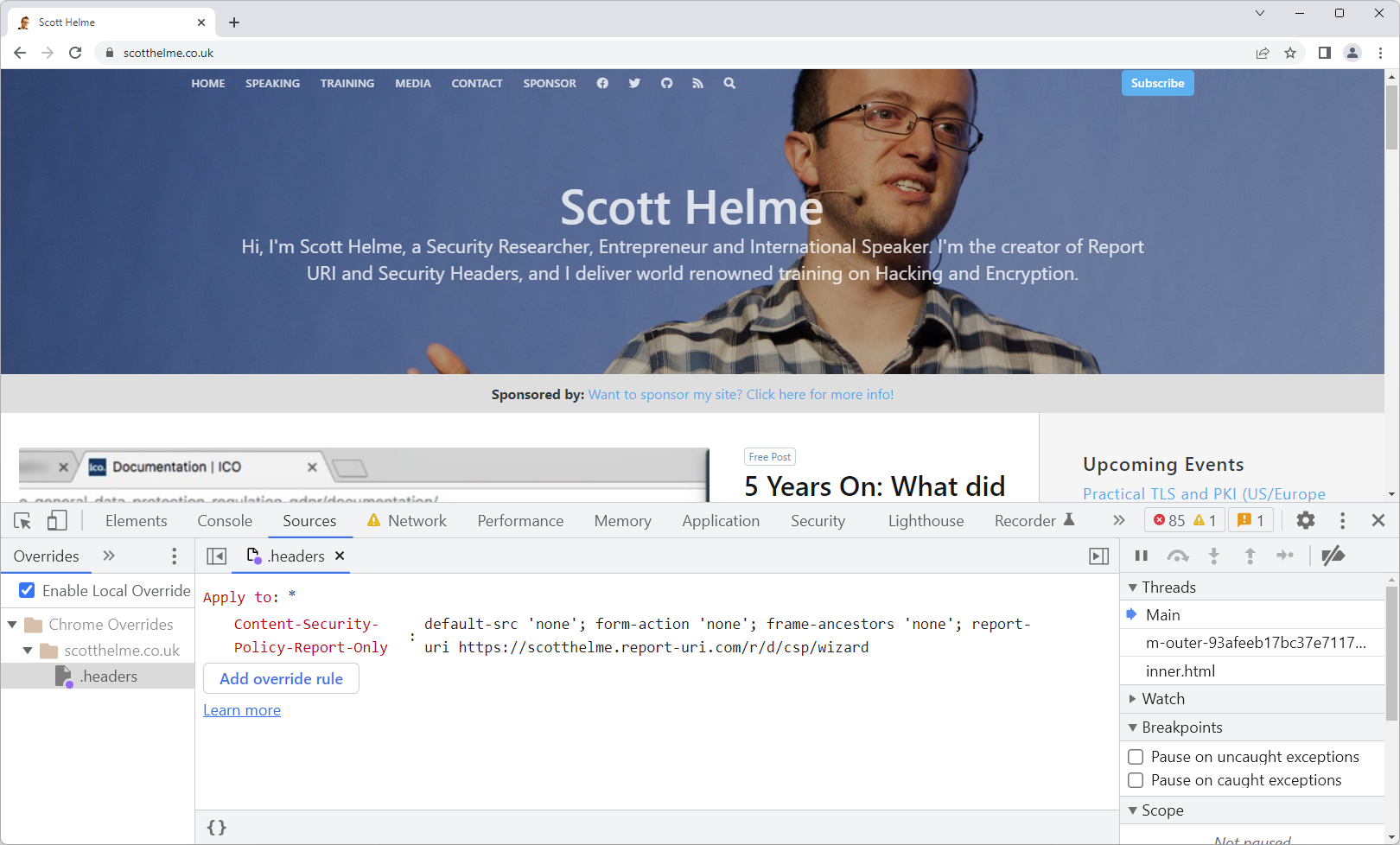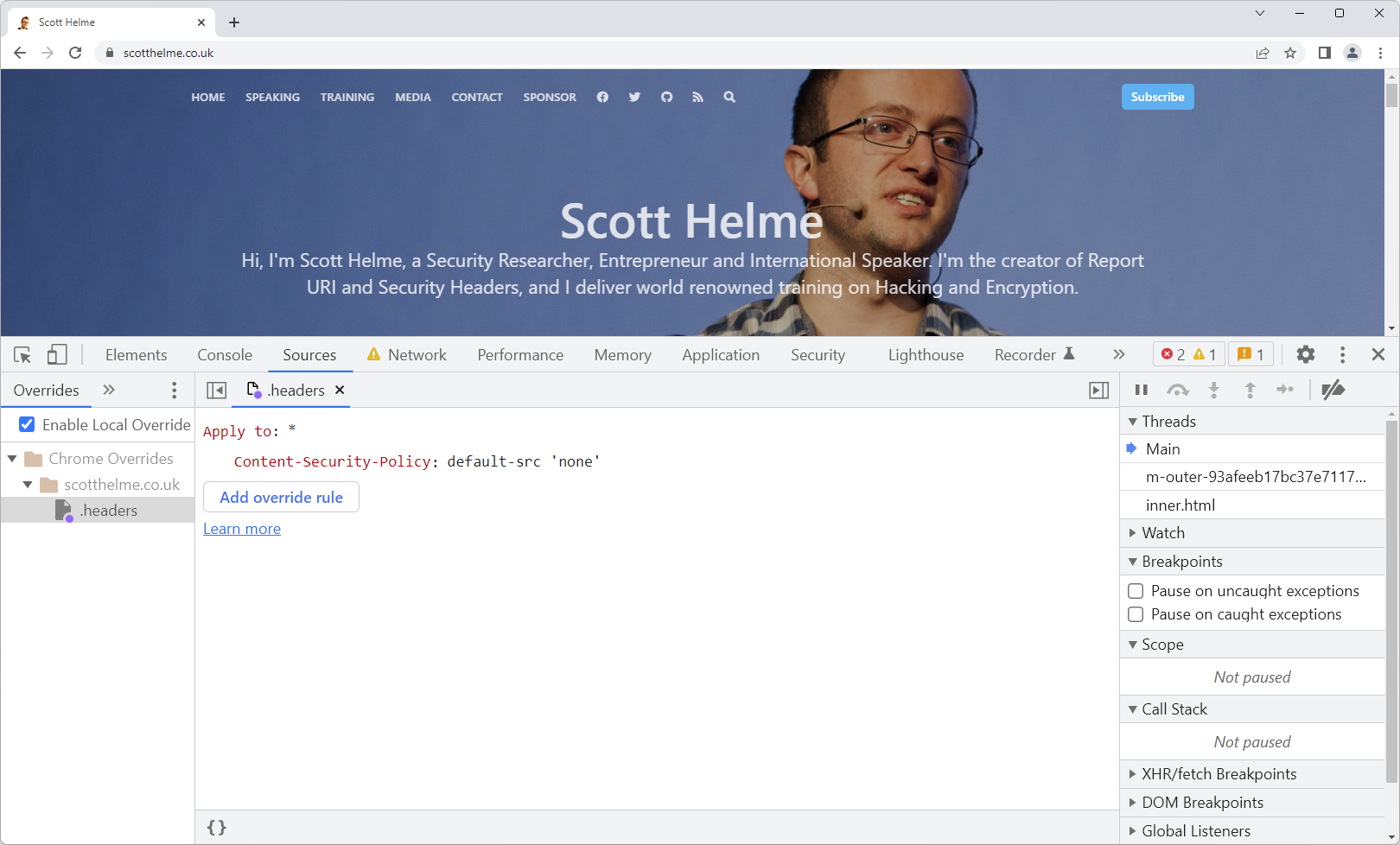 There's a new feature in Chrome Dev Tools that's going to make it easier than ever to get started with Security Headers like Content Security Policy! Let's take a look at how to override HTTP Response Headers and build a basic CSP in just a few minutes.