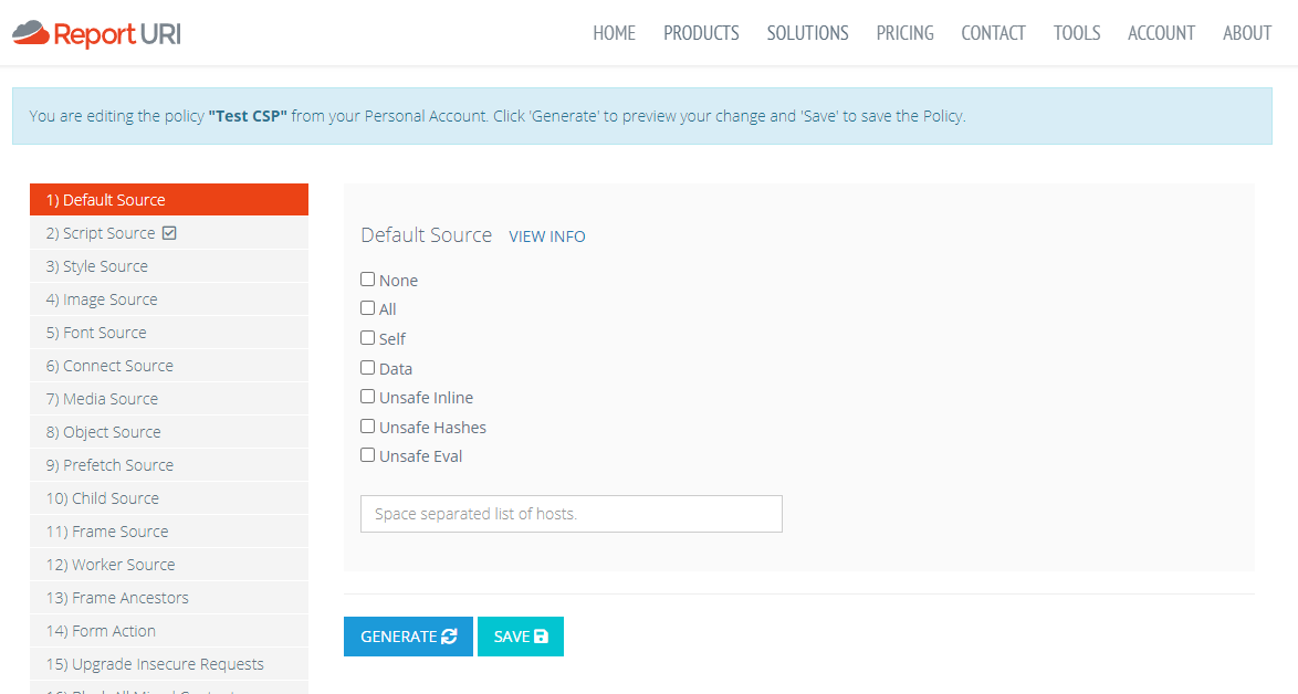 This tool has been present on Report URI since day one and allows you to create a Content Security Policy using a GUI-based tool. It's been really popular since launch in 2015 and has received various updates ([1][2][3]) since. The most commonly requested feature for the CSP Builder was a tighter integration between the builder and the policies users have in the My Policies section of their account, which we're now happy to announce!