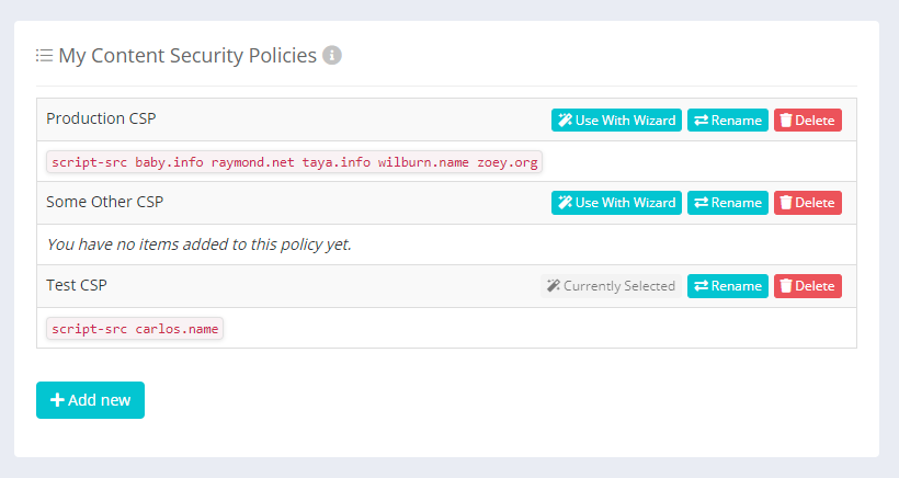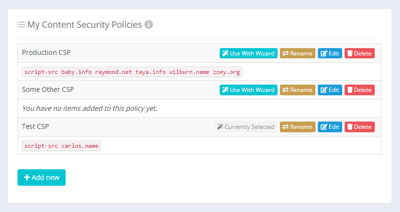 Since its inception, the CSP Wizard remains one of the most used features outside of our core service offering of gathering reports and has helped countless websites quickly and easily get most of the groundwork done for creating a viable CSP. As use of the Wizard has grown, and as it is used by larger and more complex organisations, a common request has been for more flexibility in how the Wizard can be used, which is our first new feature!