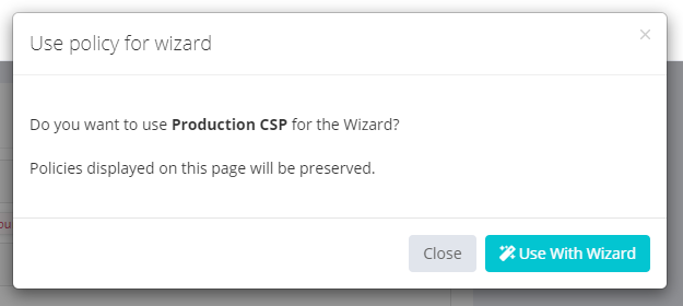 When switching between the policy that is currently being used with the Wizard, no progress will be lost in the Wizard. Previously, when switching between the policy that is active with the Wizard, our view was that work on this policy was 'complete' and the Wizard items would be cleared, leaving you with your final CSP. It turns out this wasn't the case and required a little bit of re-architecting on our side for users or teams to now be able to dynamically switch between policies being used in the Wizard at any time you like!