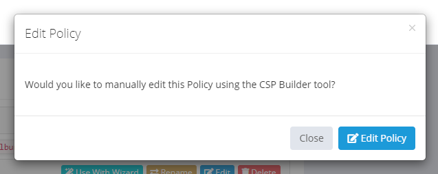 The CSPs in the My Policies section of your account can now be manually edited in the CSP Builder with a single click of the new 'Edit' button.