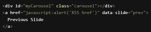 This one I knew was coming and is something we were already actively working towards solving. The problem is an XSS vulnerability in the version of Bootstrap we're using, which was assigned CVE-2024-6484 and Medium Severity. Taking a look at the details, and the provided PoC, it seems that the issue is if you let an attacker inject arbitrary content into HTML attributes, including the href, they can execute arbitrary JS. Here's the PoC code...