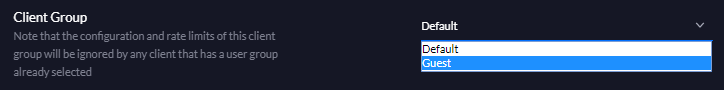 My connection can do ~80Mbps down and ~20Mbps up so I've set the limit on the Guest group to be half of that at 40Mbps and 10MBps, which should leave plenty for me. Click Apply and the new Client Group should be ready to use.