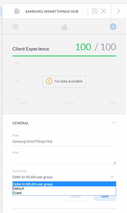 This means that all of those pesky devices on the WiFi can't soak up all of your bandwidth and there should always be plenty for you to play with, leaving just wired devices to take care of. If you have wired devices that we segregated off onto the VLAN earlier, you need to add the Client Group to those too so they are subject to the same restrictions. Simply head over to your Clients list, select the device and on the Settings page, choose the new Guest group from the User Group drop down menu.