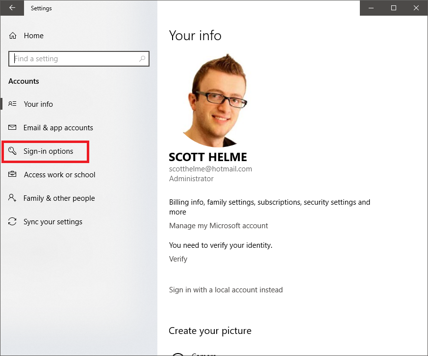 Setting up Windows Hello