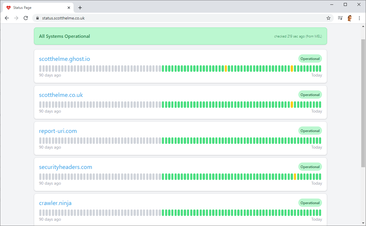 Before we get started you can take a look at my status page and decide if you'd like one for yourself! status.scotthelme.co.uk