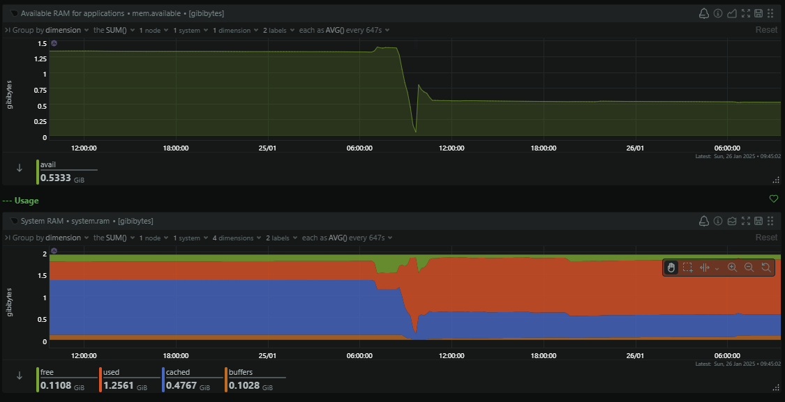 It's odd because first, the server has an enormous amount of RAM that apparently we were low on, and second, I hadn't received any notifications that the server was low on resources, which is something I'd receive a notification about immediately. Something didn't add up, and I was quickly able to verify that the server was only using a little over 50% of the available RAM, so we still had a huge amount left.