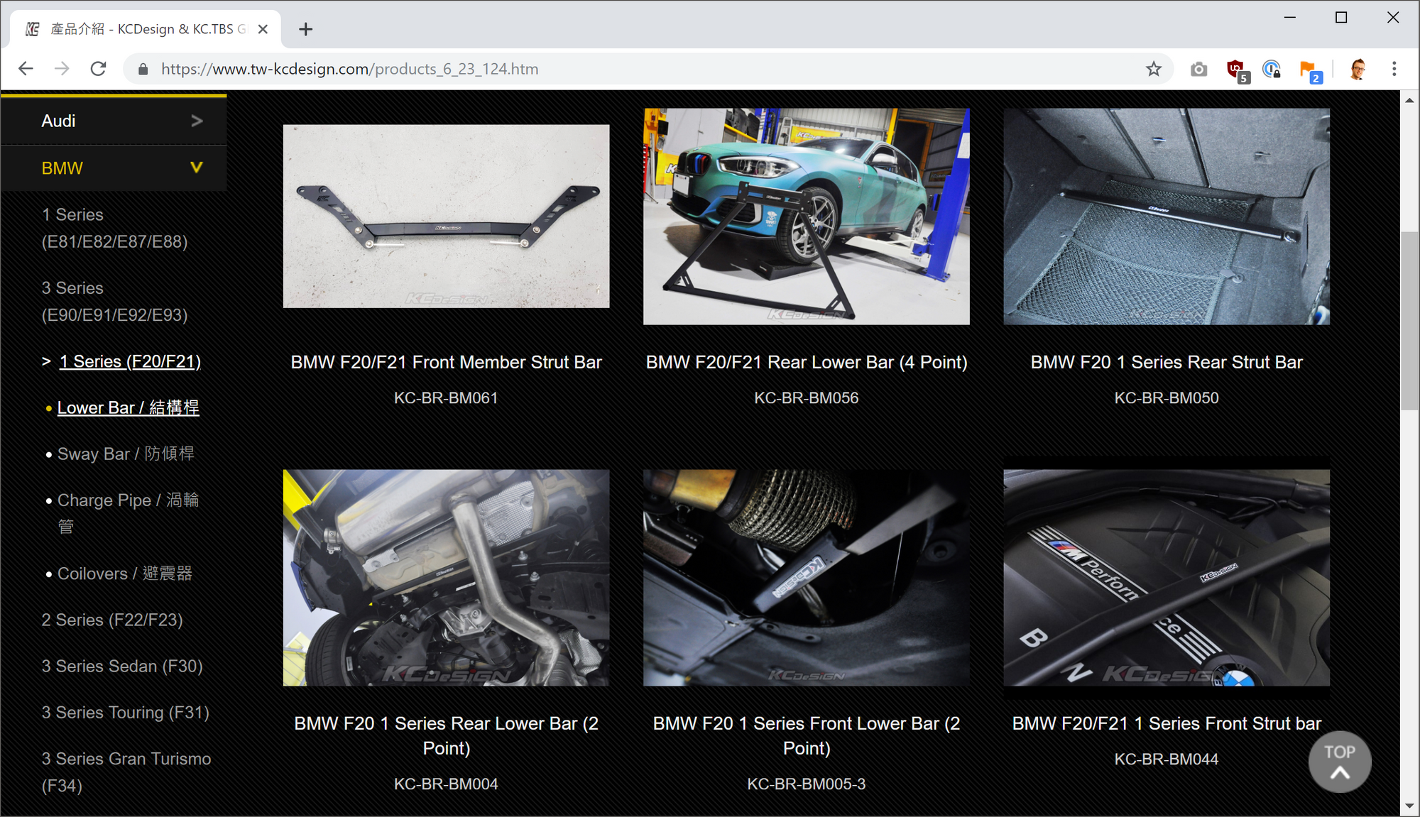 KC Design, based in Taiwan, make various different braces for the F20 including their own version of the F21 that I bought from BMW. I decided if I was going to be ordering from them and paying for the international shipping I may as well go all in and get the entire brace kit. You can see the brace kit on their website here and it includes options for: