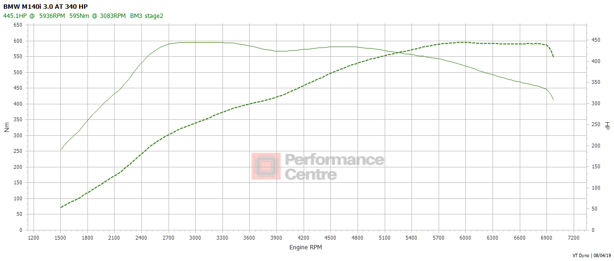 Yeah! Peak power was 445.1 BHP (331.9Kw) at 5,936 RPM and peak torque was 438.8 lb/ft (595Nm) at 3,083 RPM which is crazy! Another thing I love about this is just how long that torque pulls for. Peak torque at just over 3,000 RPM and it doesn't really start to dip until you're well over 5,000 RPM.