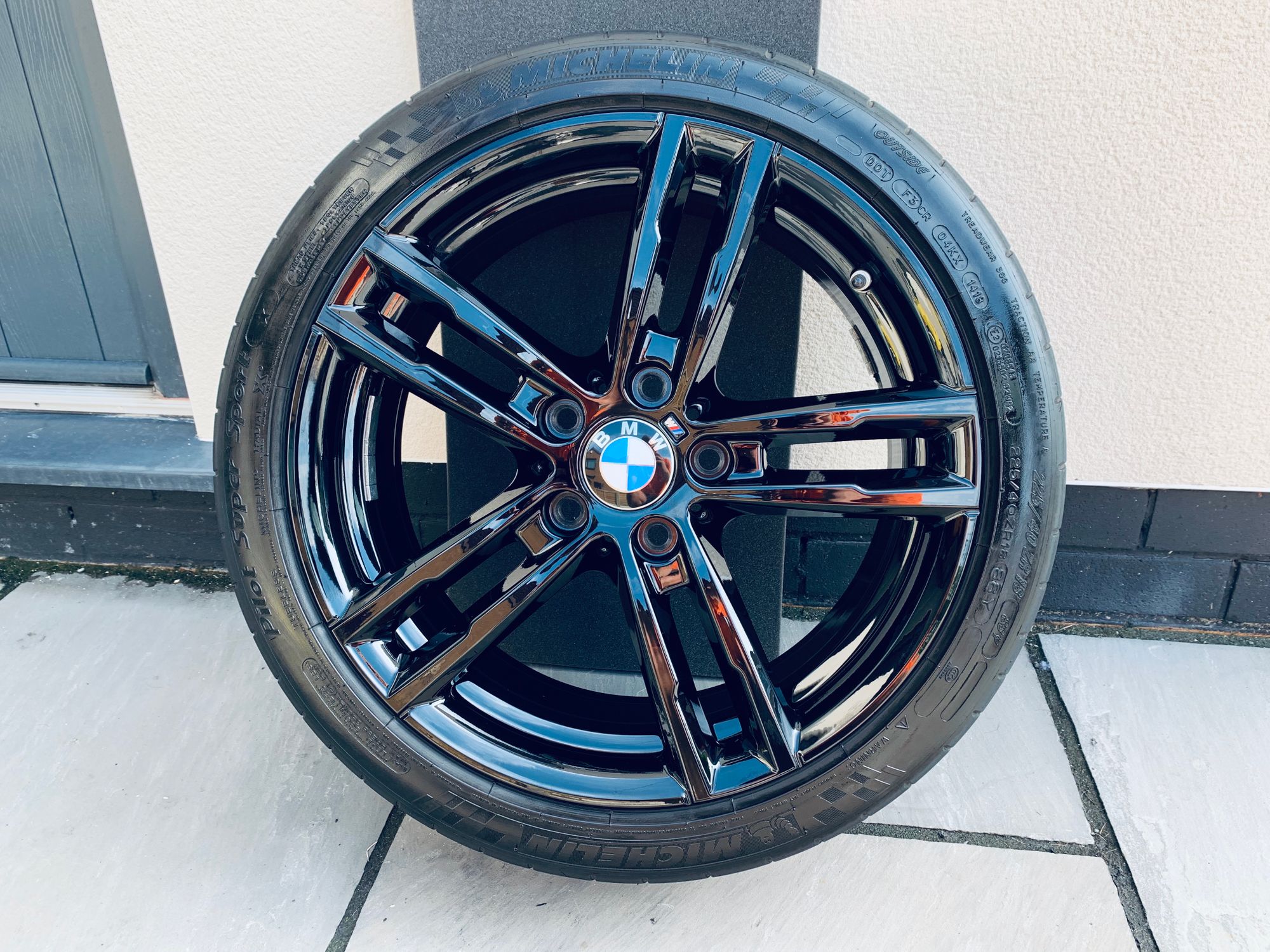 Because I was changing the wheels out for larger ones I could change them to any style I wanted and there's a world of choice out there. The ones that came with the car are known as the '716m' style in gloss black. Here's one of them when I had them off for cleaning.
