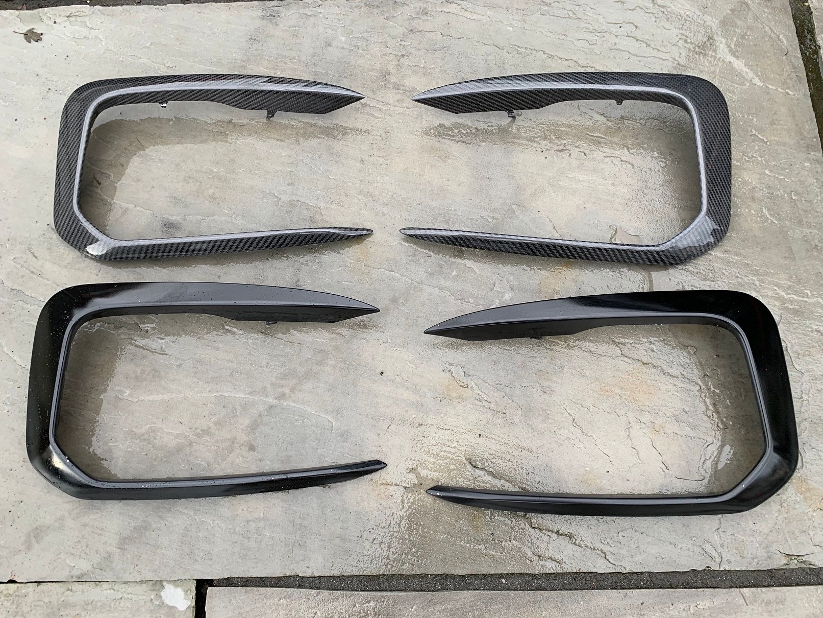 I've said it before but how can anyone not love carbon fibre? I'm not talking about the fake stuff you can vinyl wrap onto things, but real, awesome carbon fibre! I bought myself a few more goodies from AutoID to replace on the car and here they all are!