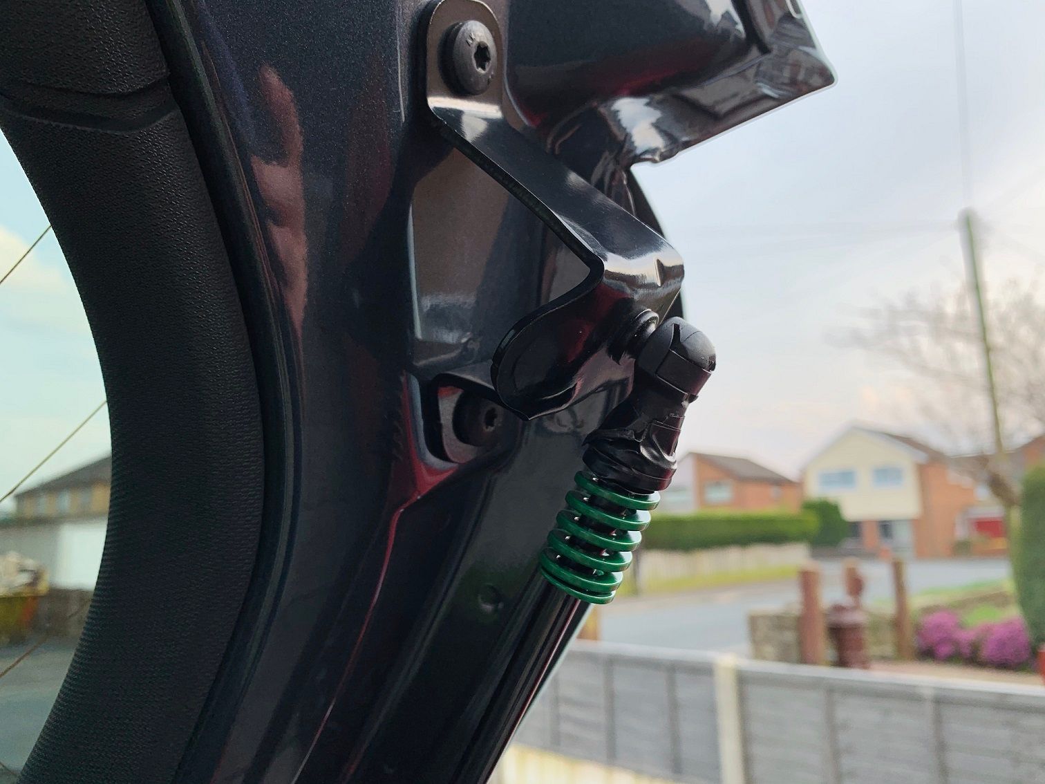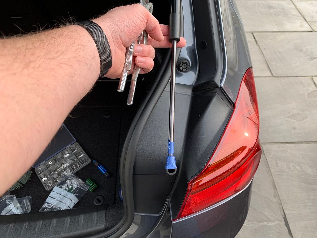 Once complete, the metal rods that go into the strut unit have the spring on them and when fully closed we just want a little pressure on the spring to give us a boost when we release the boot catch.