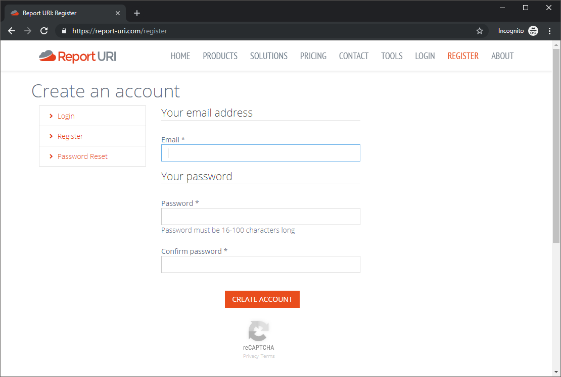 One of the first things that many people, including myself, might think about when talking about bots, or more specifically stopping bots, is some kind of captcha. More specifically you're probably familiar with the Google version of this, reCAPTCHA. Indeed we do use reCAPTCHA on Report URI and you can see it here on our registration form.