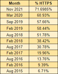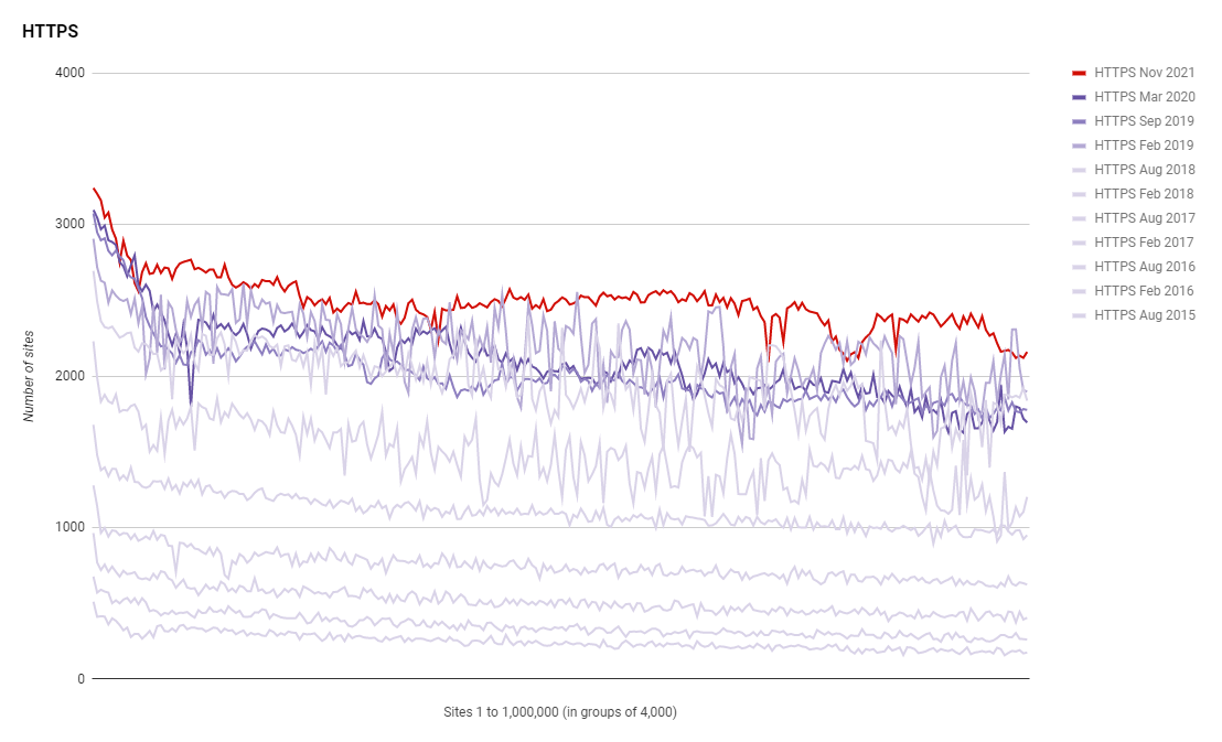 It will no doubt be expected now that we continue to see a rise in adoption of HTTPS across the Top 1 Million sites and that's exactly what we can see in this latest report.