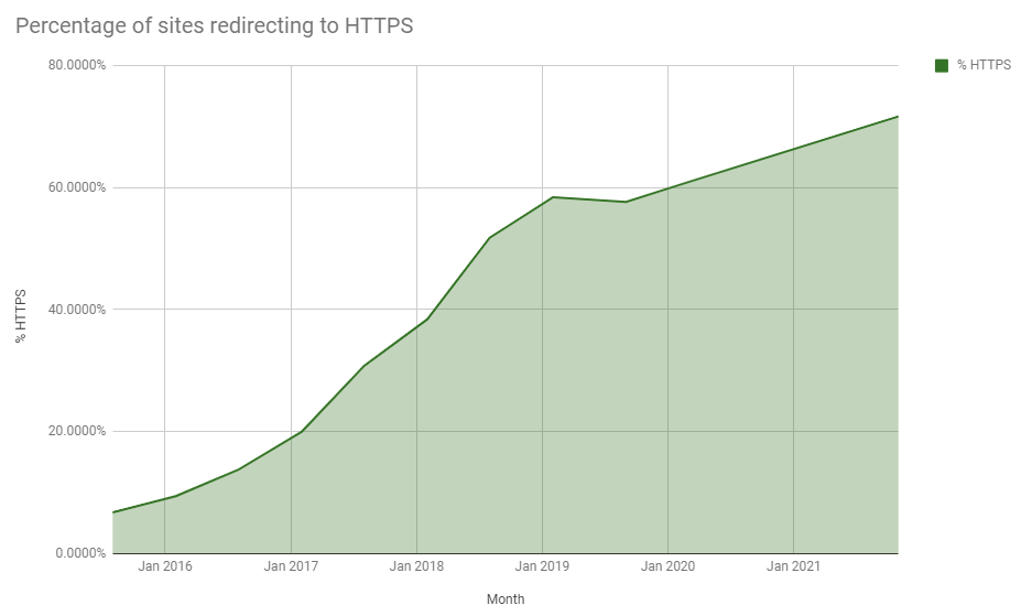 That's almost 72% of the sites in the Top 1 Million now actively redirecting traffic to use HTTPS!
