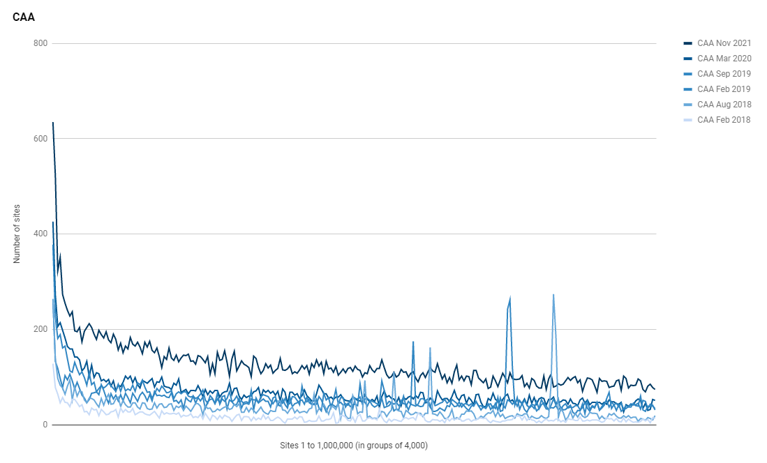 With the growth in the use of certificates as more sites switch to HTTPS, we'd hope for a growth in related technologies like CAA that allow sites operators to control which CAs are allowed to issue certificates for their domain.
