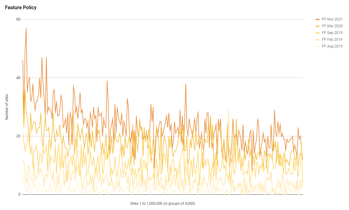 Feature Policy was deprecated back in Sep 2020 and replaced with Permissions Policy, but despite that, we've still seen a large amount of growth in the use of Feature Policy!