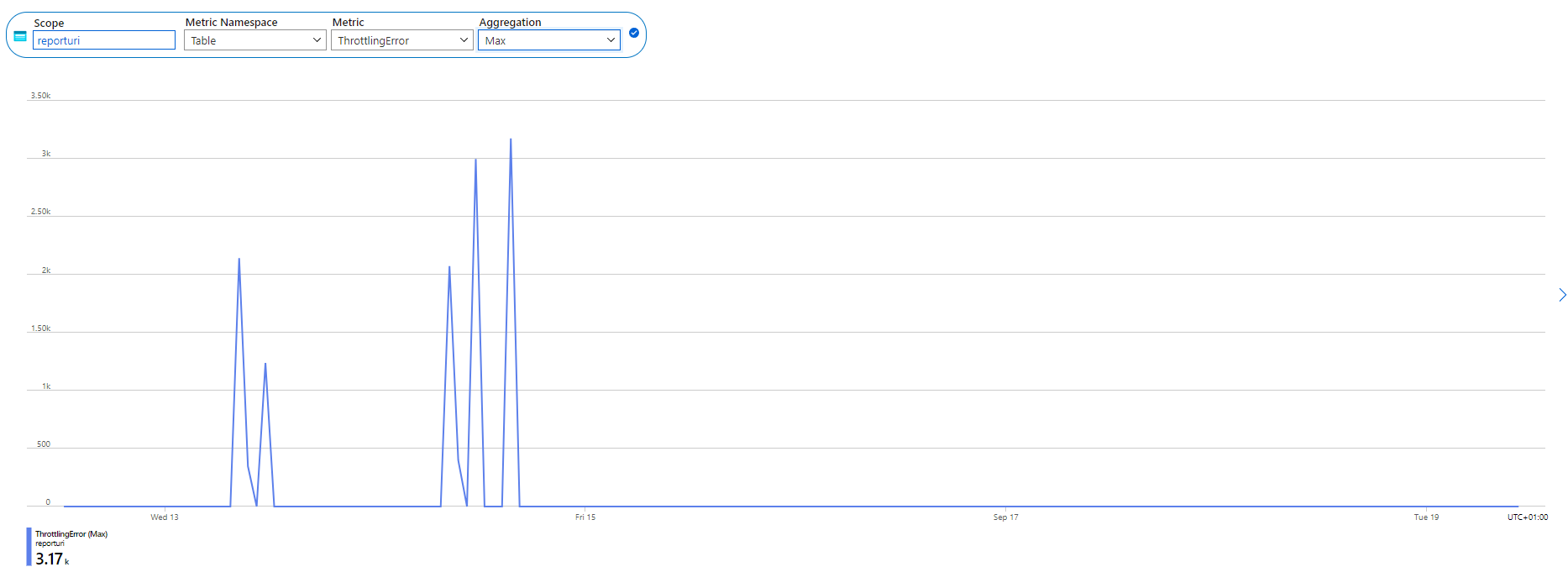 I went over to the Azure Portal and there is a metric available for our storage account to look at the amount of throttled transactions against our tables, and...