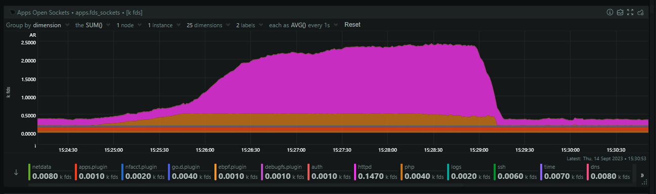 Because all I had was a theory, I wanted to reproduce it and see it with my own eyes. Given the relative simplicity of this problem, it shouldn't prove too hard to reproduce, so I fired up a server with the same resources as our ingestion servers and created a simple PHP script.