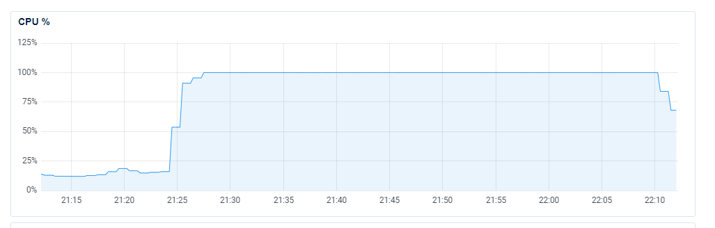 I took a look at our DigitalOcean dashboard to see how the ingestion servers were holding up during the window that the JSON exceptions were being thrown, and it seems that they were more than a little busy!
