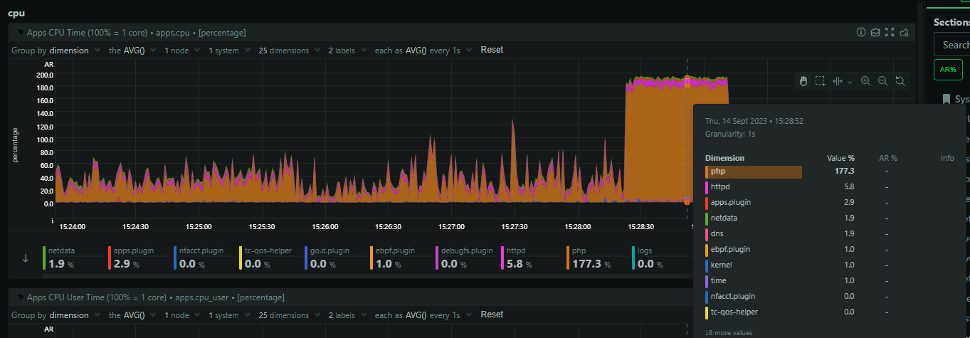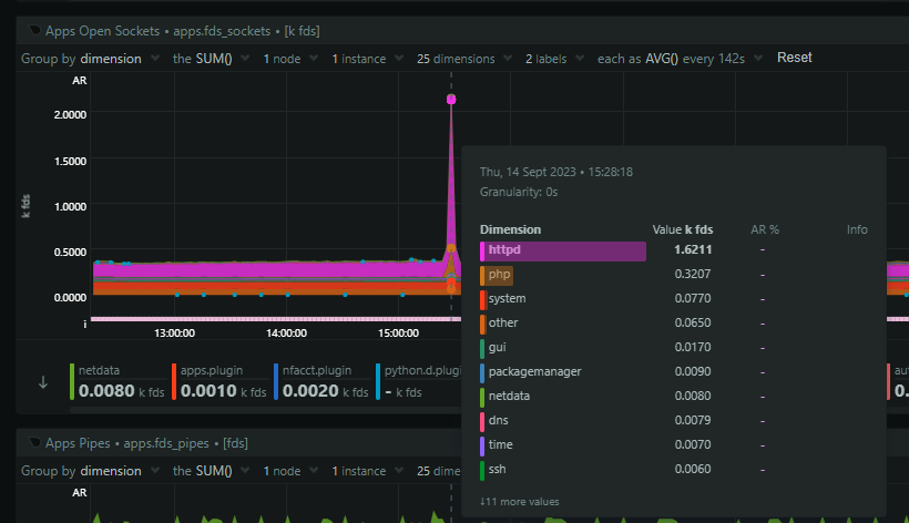 + listen = /run/php/php8.2-fpm.sockThe change seemed good with no adverse effects so I deployed it across the entire fleet, not just the ingestion servers. Everything is managed with Ansible so making changes like this across a large number of servers is really easy.