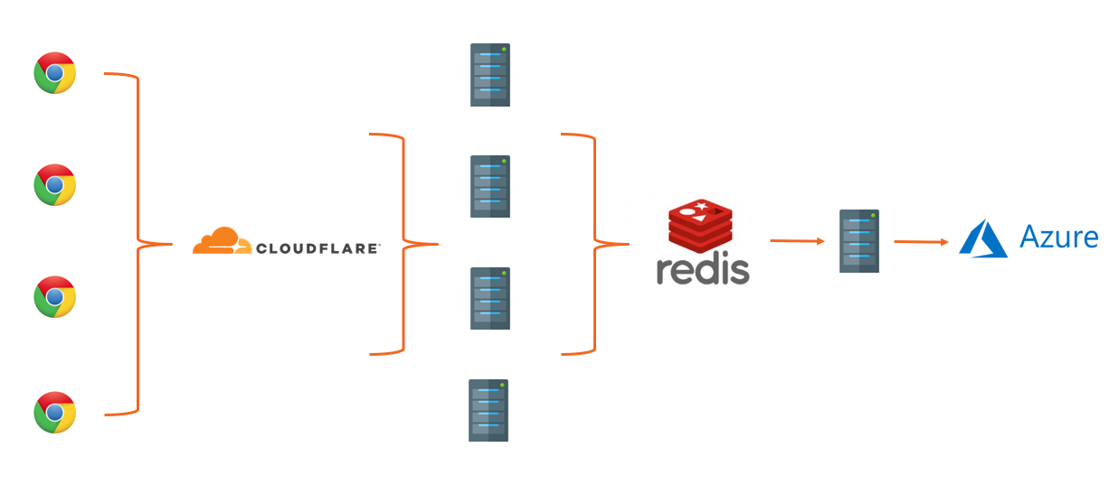 - The 'consumer' servers take batches of reports from Redis, applying advanced filters, threat intelligence, quota restrictions and per-user settings, before placing them into persistent storage in Azure.